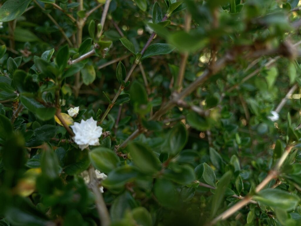 つぶらな上品なお花で、私の大好きなお花の一つ。白丁花八重咲き。また秋も咲いて来てくれました。