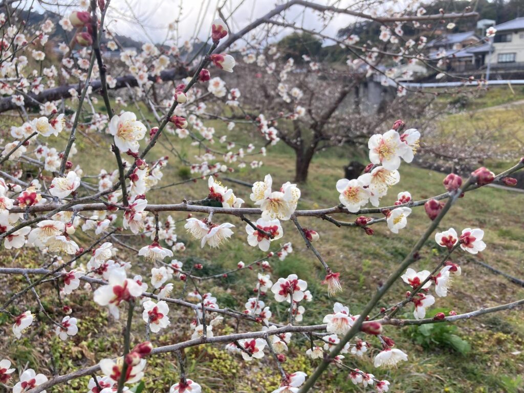 田辺は先日の積雪以降、暖かい日が続いています。この暖気につられてか、梅の花もとうとう満開に。咲きはじめが早かったわりにそれからの気温が低かったためか、平年くらいの満開期に落ち着いています。